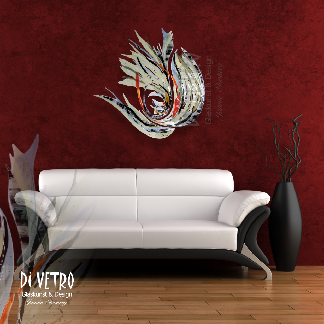 De afmeting van dit glaskunstwerk is ± 95 x 100cm.