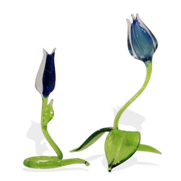 Glasobject 'Tulp' staand klein 6-7cm Blauw